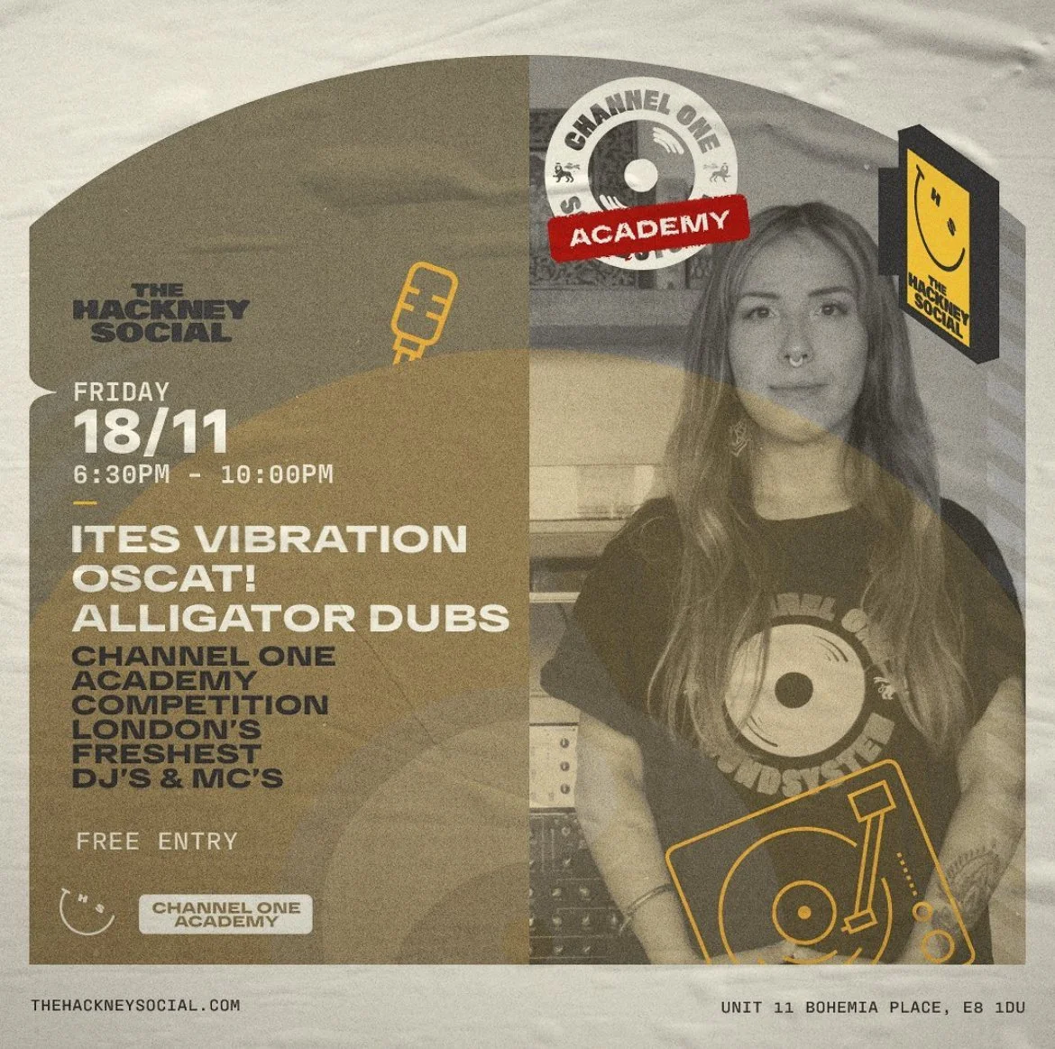 Back to All Events Channel One Soundsystem - London Friday, November 18, 2022 6:30 PM 10:00 PM Google Calendar ICS